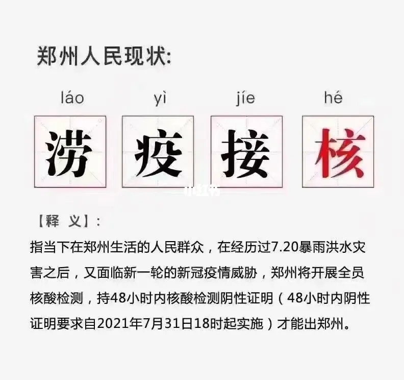 这不是错别字,这是一个郑州人民创造出来的词汇,意思是:在7.20特大暴雨之后,又在灾后重建的过程中,六院的新冠的疫情再次爆发,紧接着郑州也开始了全市规模的核酸检测。